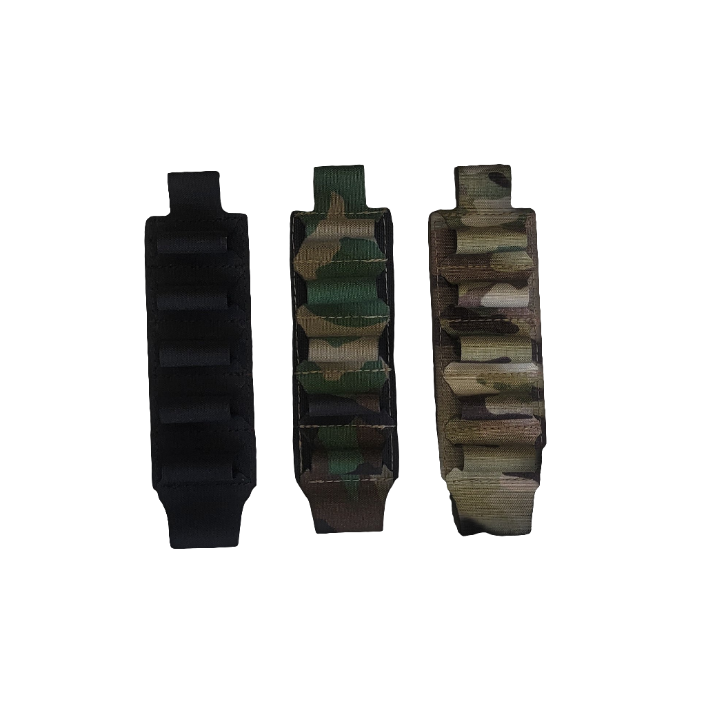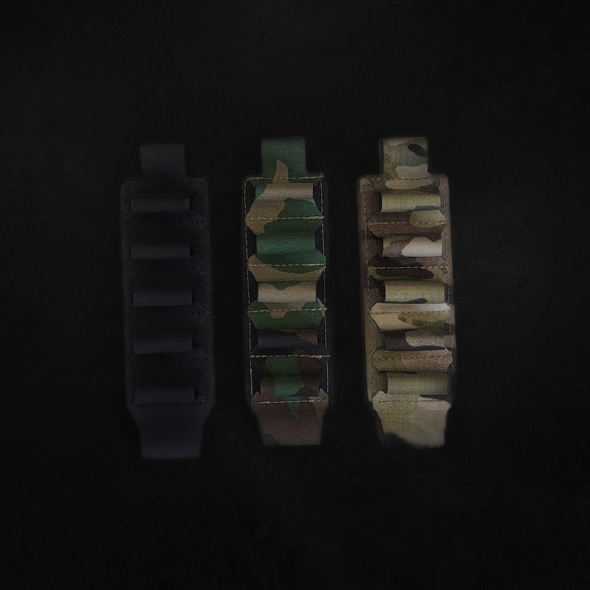 Tulsa Textile Solutions LLC's 12g shotgun cards are made from Berry Amendment Compliant materials, in Oklahoma. They are designed to be the most organized way to carry 12g shotguns shells for reloading. They are lasercut from B52 Squadron and backed with hook velcro to be worn on body armor or carried on the side of a shotgun.